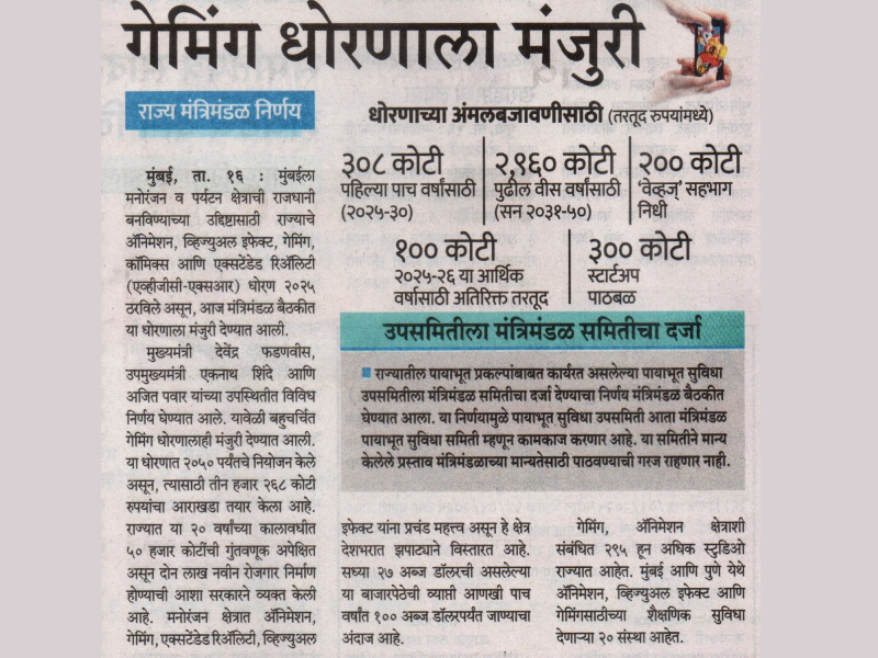 The state's AVGC-XR Policy 2025 was approved during a meeting of the state cabinet chaired by Chief Minister Devendra Fadnavis.
