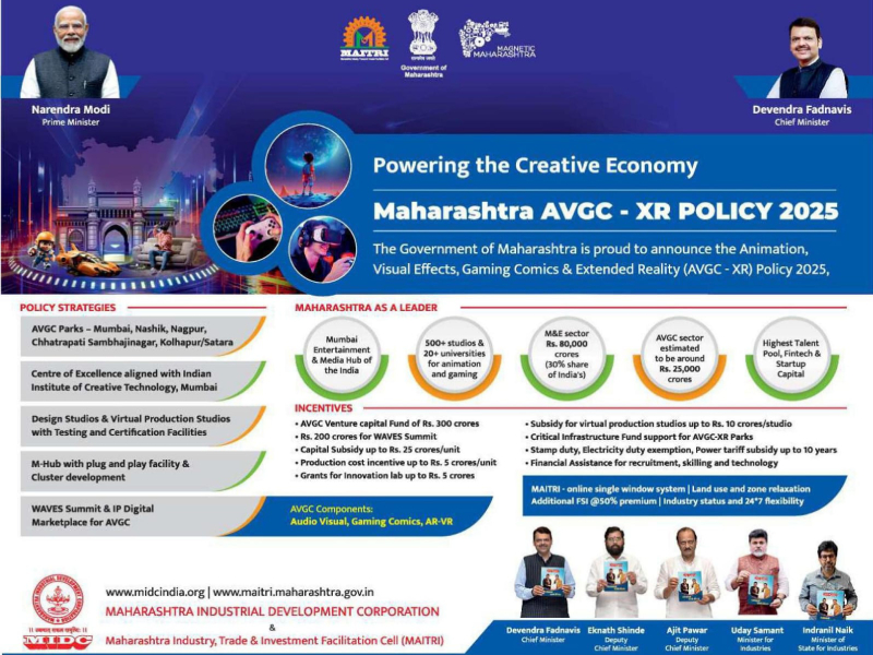 The policy envisions Maharashtra as a global destination for AVGC-XR by fostering innovation, entrepreneurship and intellectual property creation.